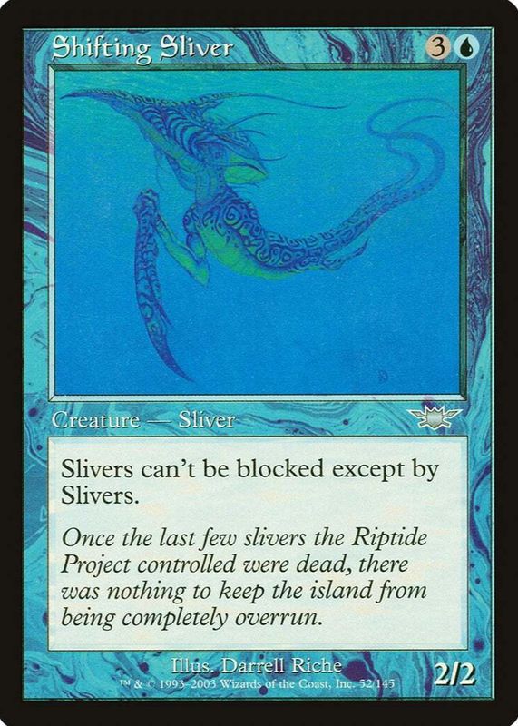 The Shifting Sliver 2003 Legions #52 Base card in Raw TCG (Lightly Played) condition has moved up $0.66 (+24.0%) in the last 30 days and was last sold for $3.41 .