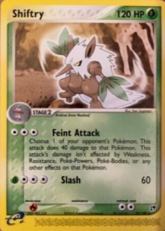 The Shiftry 2003 EX: Sandstorm #022/100 Base card in Raw TCG (Near Mint) condition has moved up $0.32 (+14.7%) in the last 30 days and was last sold for $2.50 .