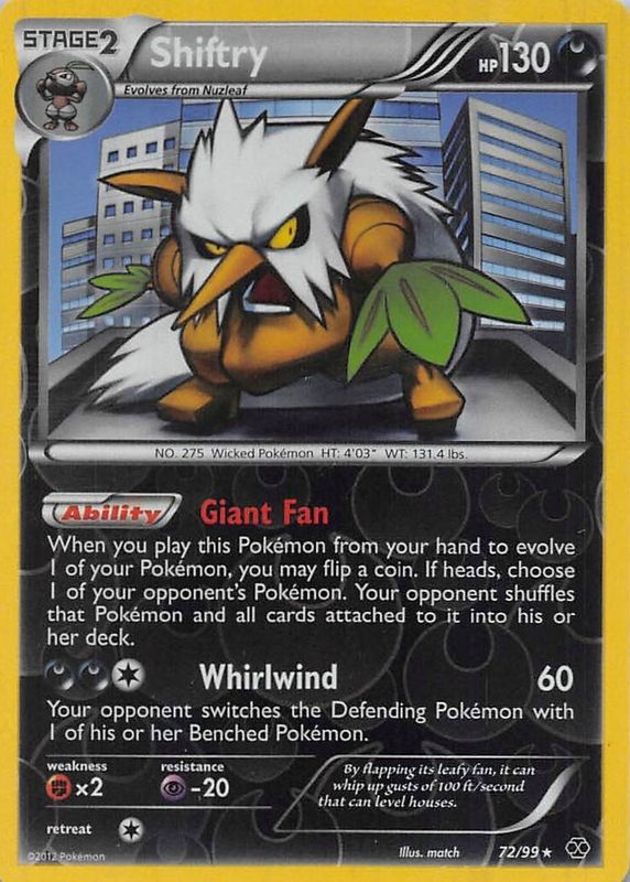 Shiftry 2012 Black & White: Next Destinies #72/99 Reverse Holo RAW TCG (LIGHTLY PLAYED) Price Guide