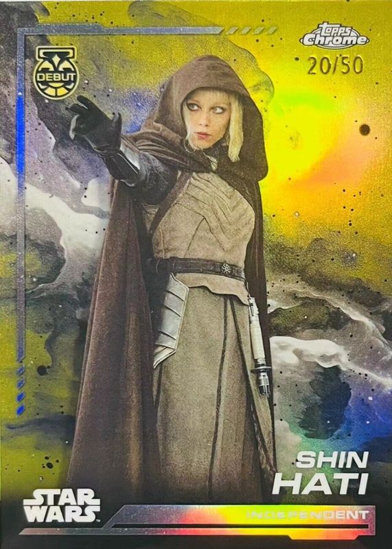 This card is 1 of 24 Shin Hati's card variations in the 2024 Topps Chrome Star Wars set being tracked by Sports Card Investor, including Base, Blue Blaster Pulsar Refractor, Costco Super Box, Costco Super Box Refractor, and Rainbow Refractor.