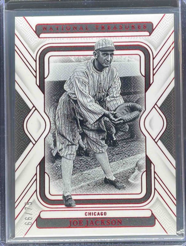 Shoeless Joe Jackson's Baseball cards are available in at least 15 sets. Shoeless Joe Jackson's biggest 7-day price movers are 2025 National Treasures #89 Red /75, 2025 National Treasures #89 Platinum /1, and 2025 National Treasures #89 Midnight FOTL /5.