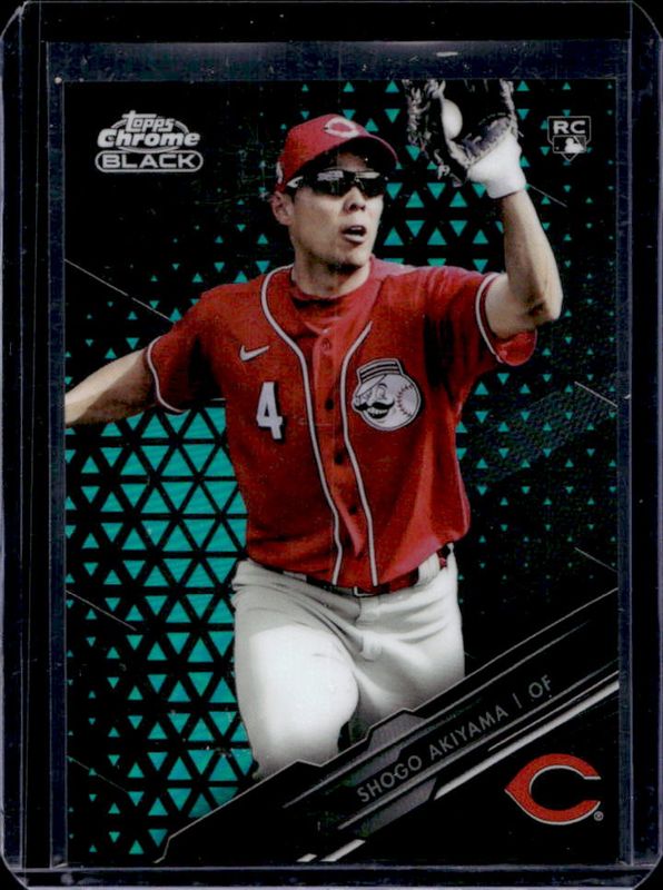 The Shogo Akiyama 2020 Topps Chrome Black #33 Green /99 Rookie card is 1 of 16 Shogo Akiyama's card variations in the 2020 Topps Chrome Black set being tracked by Sports Card Investor, including Base, Refractor /199, Blue /75, Gold /50, and Orange /25.