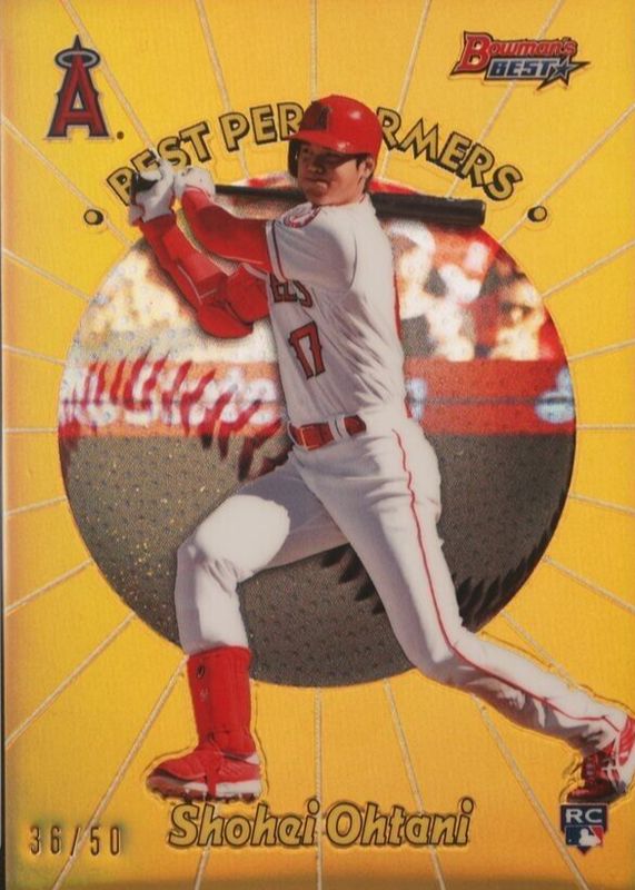 The Shohei Ohtani 2018 Bowman's Best #98BP-SO 1998 Best Performers - Gold Refractor /50 Rookie card in Raw condition has not changed in price in the last 30 days and was last sold for $900.00 .