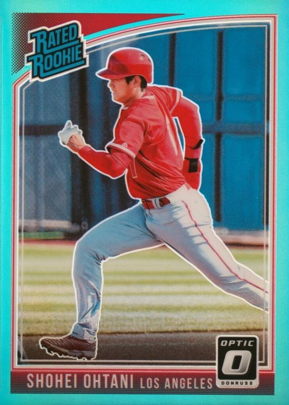 Shohei Ohtani 2018 Optic #56 Rated Rookie - Aqua /299 (Running) RAW Price Guide