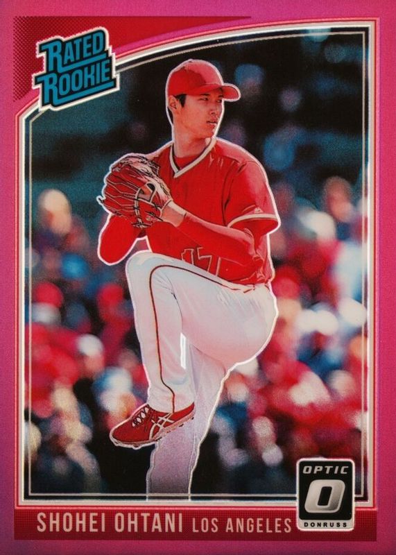 The Shohei Ohtani 2018 Optic #176 Rated Rookie Variation - Pink card in Raw condition has moved down -$16.25 (-16.9%) in the last 30 days and was last sold for $80.00 .