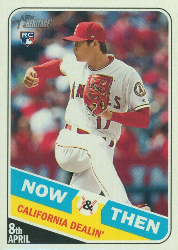 The Shohei Ohtani 2018 Topps Heritage #NT-11 Now & Then Rookie card in Raw condition has moved down -$9.21 (-21.8%) in the last 30 days and was last sold for $33.00 .