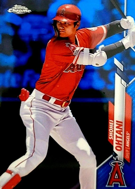 The Shohei Ohtani 2020 Topps Chrome #21 Blue Refractor /150 card in Raw condition has moved down -$105 (-20.6%) in the last 30 days and was last sold for $405.00 .