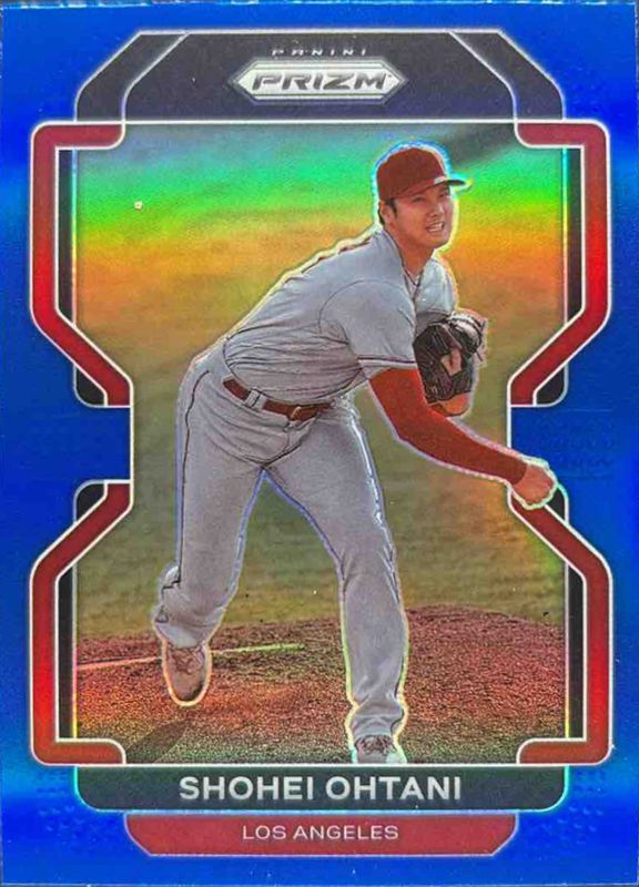 The Shohei Ohtani 2022 Prizm #41 Blue card is 1 of 87 Shohei Ohtani's card variations in the 2022 Prizm set being tracked by Sports Card Investor, including Base, Blue Velocity, Carolina Blue, Cosmic Haze, and Giraffe.
