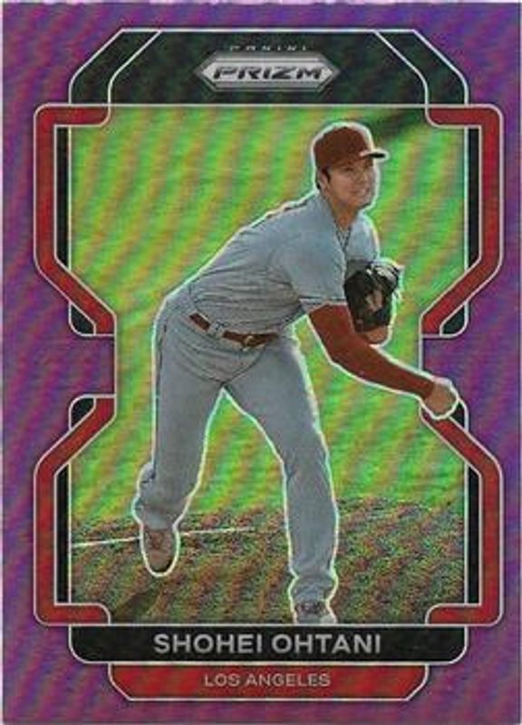 The Shohei Ohtani 2022 Prizm #41 Purple card is 1 of 87 Shohei Ohtani's card variations in the 2022 Prizm set being tracked by Sports Card Investor, including Base, Blue, Blue Velocity, Carolina Blue, and Cosmic Haze.