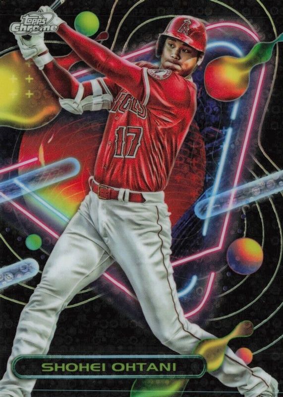 This card is 1 of 20 Shohei Ohtani's card variations in the 2023 Topps Chrome Cosmic set being tracked by Sports Card Investor, including Nucleus Refractor, Refractor, Aqua Equinox Refractor /199, Blue Moon Refractor /99, and Green Space Dust Refractor /75.