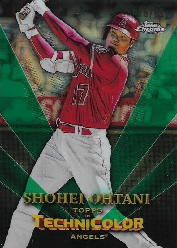 The Shohei Ohtani 2023 Topps Chrome #TT-2 Topps in Technicolor - Green Refractor /99 card in Raw condition has not changed in price in the last 30 days and was last sold for $37.00 .
