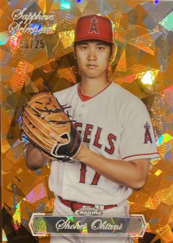 The Shohei Ohtani 2023 Topps Chrome Update Sapphire Edition #SS-22 Sapphire Selections - Orange /25 card in Raw condition has not changed in price in the last 30 days and was last sold for $363.00 .