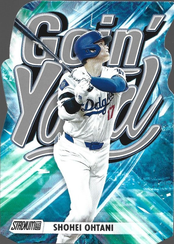 The Shohei Ohtani 2024 Stadium Club #GY-17 Goin' Yard card in Raw condition has moved down -$14.24 (-66.3%) in the last 30 days and was last sold for $7.25 .