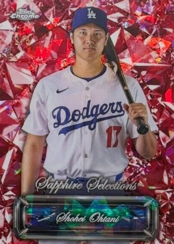 The Shohei Ohtani 2024 Topps Chrome Sapphire Edition #SS-12 Sapphire Selections - Red /5 card in Raw condition has not changed in price in the last 30 days and was last sold for $2,315.00 .