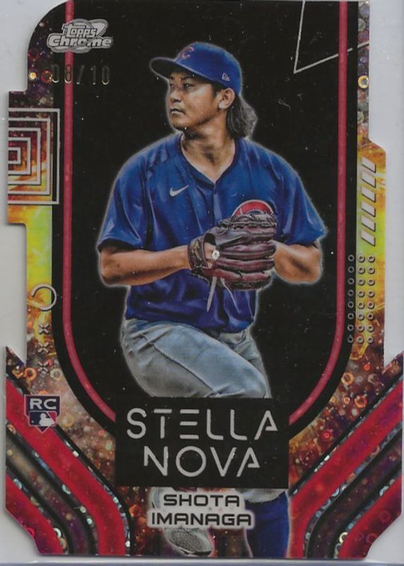 The Shota Imanaga 2024 Topps Chrome Cosmic #SN-13 Stella Nova - Black Eclipse Refractor /10 Rookie card in Raw condition has not changed in price in the last 30 days and was last sold for $80.00 .