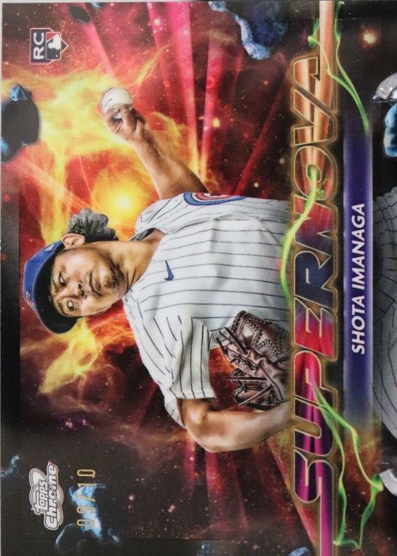 The Shota Imanaga 2024 Topps Chrome Cosmic #SPN-2 Supernova - Black Eclipse Refractor /10 Rookie card in Raw condition has not changed in price in the last 30 days and was last sold for $165.30 .