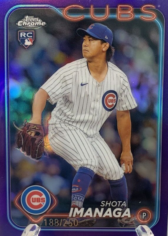 The Shota Imanaga 2024 Topps Chrome #121 Purple Refractor /250 Rookie card in Raw condition has moved up $1.01 (+25.3%) in the last 30 days and was last sold for $5.00 .