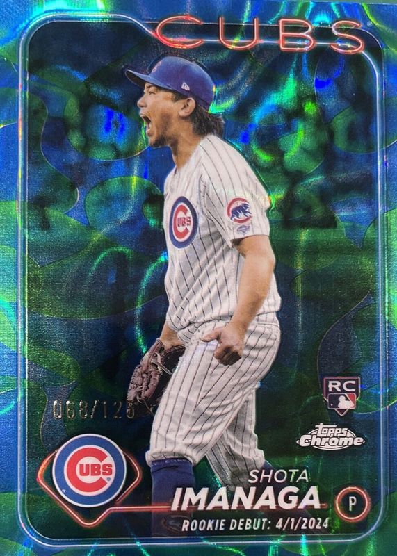 The Shota Imanaga 2024 Topps Chrome Update #USC95 Rookie Debut - Blue & Green Lava Lamp Refractor /125 card in Raw condition has not changed in price in the last 30 days and was last sold for $25.00 .
