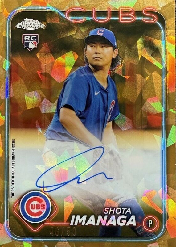 This card is 1 of 25 Shota Imanaga's card variations in the 2024 Topps Chrome Update Sapphire Edition set being tracked by Sports Card Investor, including Rookie Debut, Rookie Debut - Gold /50, Rookie Debut - Orange /25, Rookie Debut - Black /10, and Rookie Debut - Red /5.