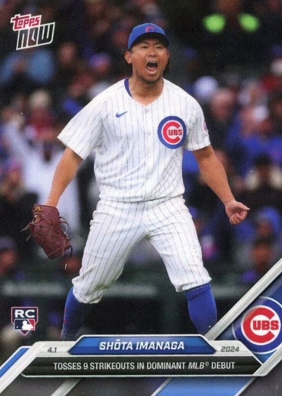 This card is 1 of 10 Shota Imanaga's card variations in the 2024 Topps Now set being tracked by Sports Card Investor, including Base (Print Run: 2,601), Base (Print Run: 4,593), Base (Print Run: 5,319), Base (Print Run: 5,857), and Base (w/F. Valenzuela - Print Run: 3,032).