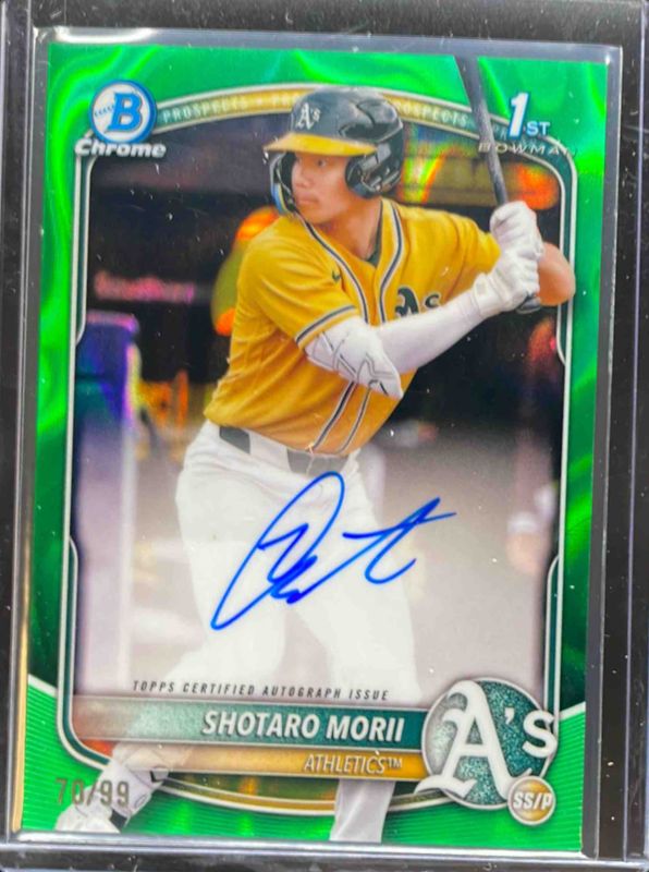 SHOTARO MORII 2025 Bowman Chrome #CPA-SM Athletics 1st Green Lava Auto /99