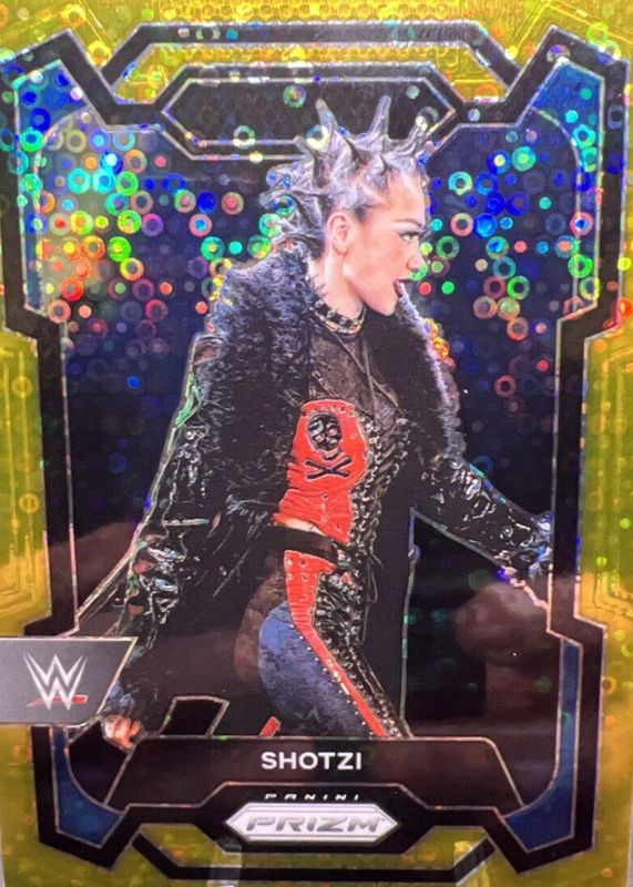 The Shotzi 2024 Prizm WWE #153 Under Card Gold /10 card in Raw condition has not changed in price in the last 30 days and was last sold for $149.99 .