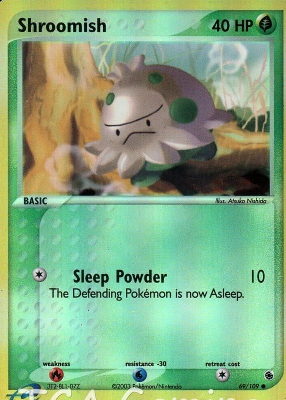 The Shroomish 2003 EX: Ruby & Sapphire #069/109 Reverse Holo card in Raw TCG (Near Mint) condition has not changed in price in the last 30 days and was last sold for $3.89 .