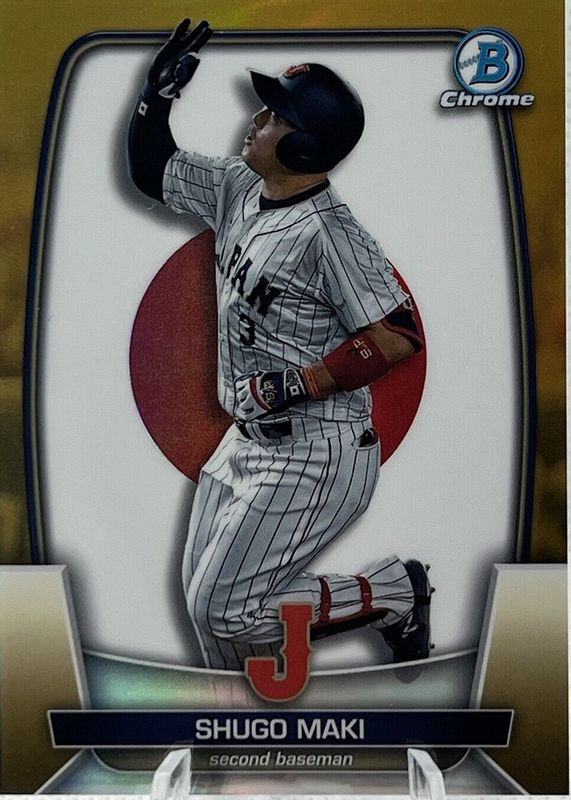 Best Prices Available For Sale of Shugo Maki 2023 Bowman Chrome #WBC-48 WBC Flag - Gold Refractor /50