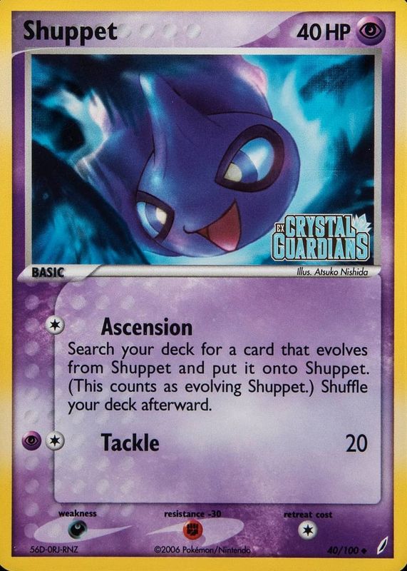 The Shuppet 2006 EX: Crystal Guardians #040/100 Base card in Raw TCG (Near Mint) condition has moved up $0.16 (+8.0%) in the last 30 days and was last sold for $2.15 .