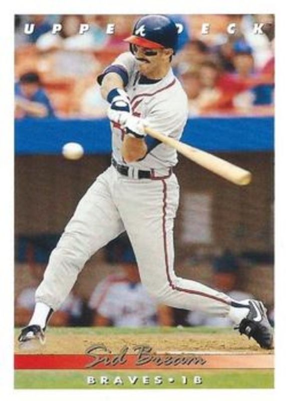 The Sid Bream 1993 Upper Deck #104 Base card is 1 of 2 Sid Bream's card variations in the 1993 Upper Deck set being tracked by Sports Card Investor, including Gold Hologram.