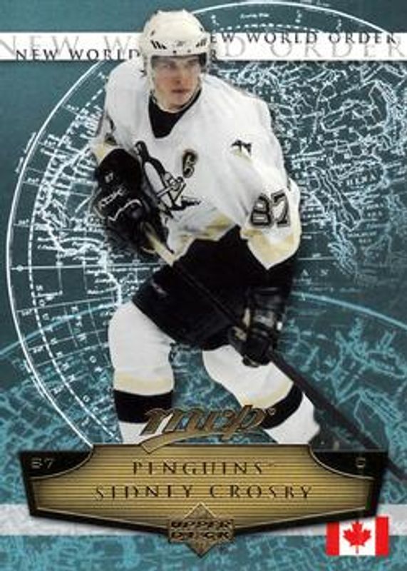 The Sidney Crosby 2007 Upper Deck MVP #NW1 New World Order card is 1 of 10 Sidney Crosby's card variations in the 2007 Upper Deck MVP set being tracked by Sports Card Investor, including #300 Base, #200 Base, #300 Gold Scripts /100, #200 Gold Scripts /100, and #200 Super Scripts /25.