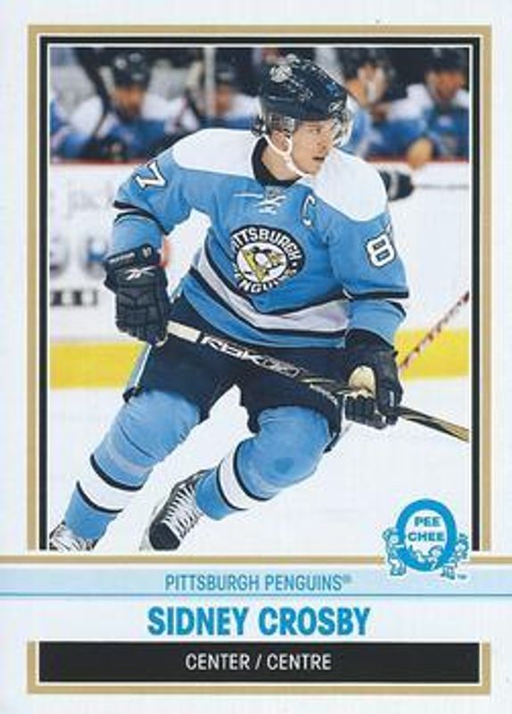 The Sidney Crosby 2009 O-Pee-Chee #87 Retro Blank Back card is 1 of 12 Sidney Crosby's card variations in the 2009 O-Pee-Chee set being tracked by Sports Card Investor, including Base, Rainbow, Retro, Retro Rainbow /100, and Blaster Box Bottoms.