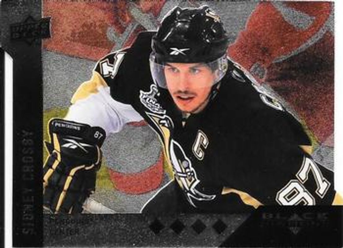 The Sidney Crosby 2009 Upper Deck Black Diamond #BD23 Horizontal Perimeter Die-Cut card is 1 of 14 Sidney Crosby's card variations in the 2009 Upper Deck Black Diamond set being tracked by Sports Card Investor, including Base, Ruby /100, Gold /10, Onyx /1, and Gemography.