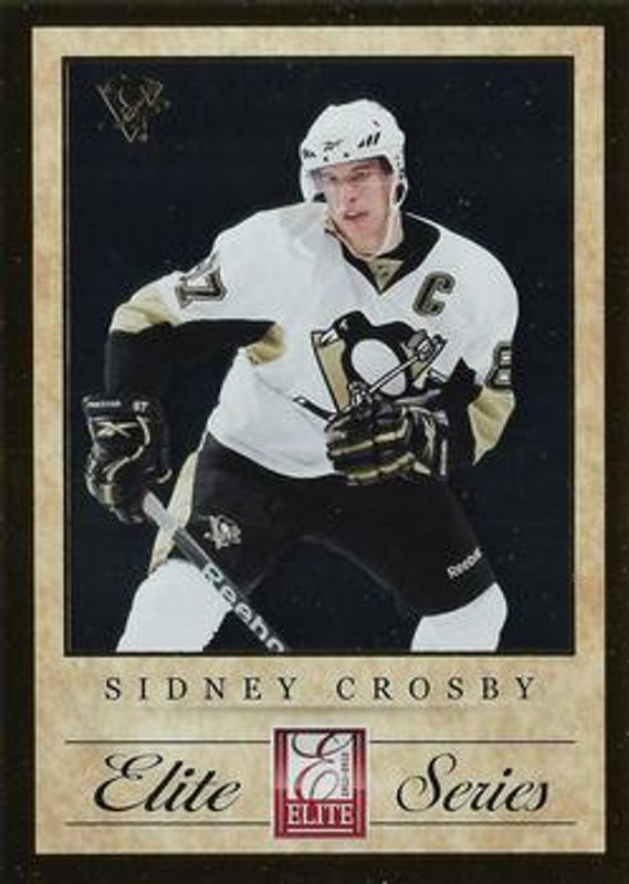 The Sidney Crosby 2011 Elite #4 Elite Series Sidney Crosby card is 1 of 18 Sidney Crosby's card variations in the 2011 Elite set being tracked by Sports Card Investor, including #167 Base /999, #167 Aspirations /99, #167 Gold Status die-cut /10, #2 Elite Series Sidney Crosby, and #3 Elite Series Sidney Crosby.