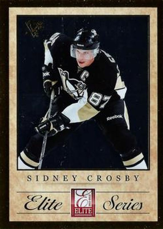 The Sidney Crosby 2011 Elite #5 Elite Series Sidney Crosby card is 1 of 18 Sidney Crosby's card variations in the 2011 Elite set being tracked by Sports Card Investor, including #167 Base /999, #167 Aspirations /99, #167 Gold Status die-cut /10, #2 Elite Series Sidney Crosby, and #3 Elite Series Sidney Crosby.