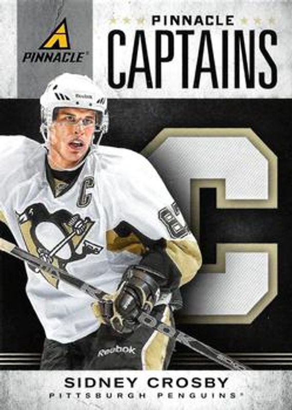 The Sidney Crosby 2011 Pinnacle #7 Captains card is 1 of 19 Sidney Crosby's card variations in the 2011 Pinnacle set being tracked by Sports Card Investor, including Base, Rink Collection, Printing Plate Black /1, Printing Plate Cyan /1, and Printing Plate Magenta /1.