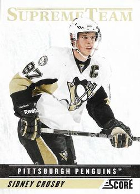 The Sidney Crosby 2011 Score #1 Supreme Team card is 1 of 14 Sidney Crosby's card variations in the 2011 Score set being tracked by Sports Card Investor, including #366 Base, #9 Base, #366 Black Ice, #9 Black Ice, and #366 Glossy.