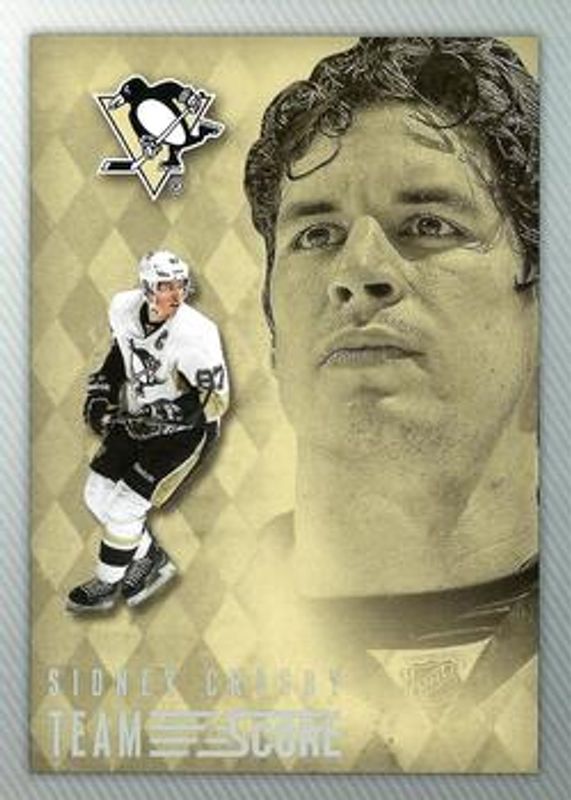 The Sidney Crosby 2013 Score #TS-1 Team Score card is 1 of 12 Sidney Crosby's card variations in the 2013 Score set being tracked by Sports Card Investor, including #399 Base, #589 Base, #399 Black, #589 Black, and #399 Gold.
