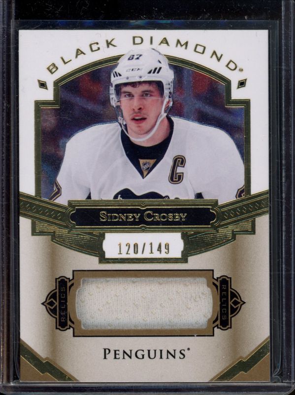 The Sidney Crosby 2016 Upper Deck Black Diamond #BDB-SC Relics /149 card is 1 of 11 Sidney Crosby's card variations in the 2016 Upper Deck Black Diamond set being tracked by Sports Card Investor, including Base /249, Pure Black Signatures /99, Pure Black Prime Relics /50, Championship Rings, and Championship Rings Gold.
