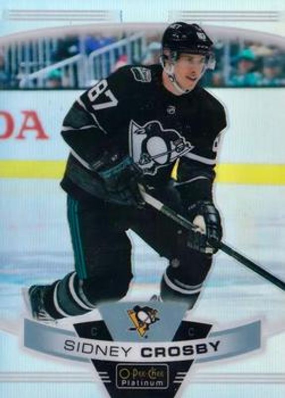 The Sidney Crosby 2019 O-Pee-Chee Platinum #1b Base card is 1 of 30 Sidney Crosby's card variations in the 2019 O-Pee-Chee Platinum set being tracked by Sports Card Investor, including Base, Matte Pink, Pond Hockey, Rainbow, and Sunset.