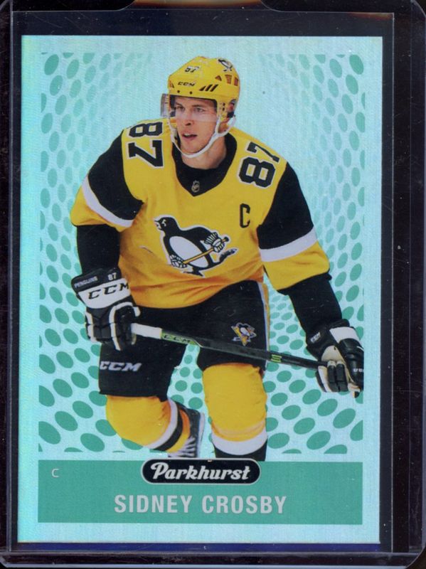 The Sidney Crosby 2019 Parkhurst #PK-20 Parkies card is 1 of 17 Sidney Crosby's card variations in the 2019 Parkhurst set being tracked by Sports Card Investor, including #1 Gold, #261 Gold, #261 Silver, #1 Silver, and #1 2019 Parkhurst Flagship.