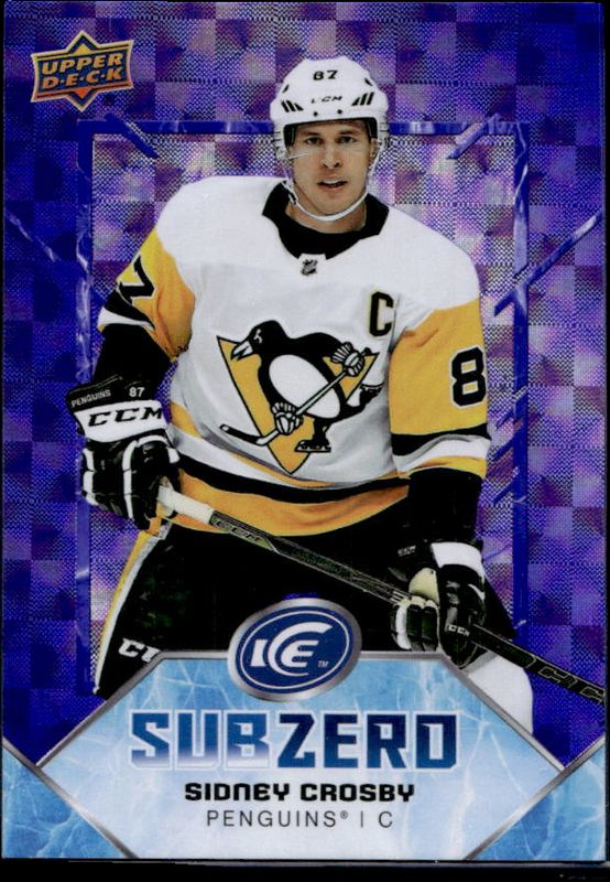 The Sidney Crosby 2019 Upper Deck Ice #SZ-5 Sub Zero Stars card is 1 of 16 Sidney Crosby's card variations in the 2019 Upper Deck Ice set being tracked by Sports Card Investor, including Base /499, Green, Ice Cube, Orange, and Red /5.