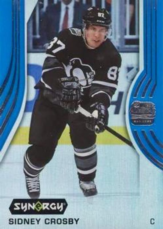 The Sidney Crosby 2019 Upper Deck Synergy #33 Blue /799 card is 1 of 26 Sidney Crosby's card variations in the 2019 Upper Deck Synergy set being tracked by Sports Card Investor, including #30 Base /19, #33 Base /19, #30 Red, #33 Red, and #33 Red Bounty.
