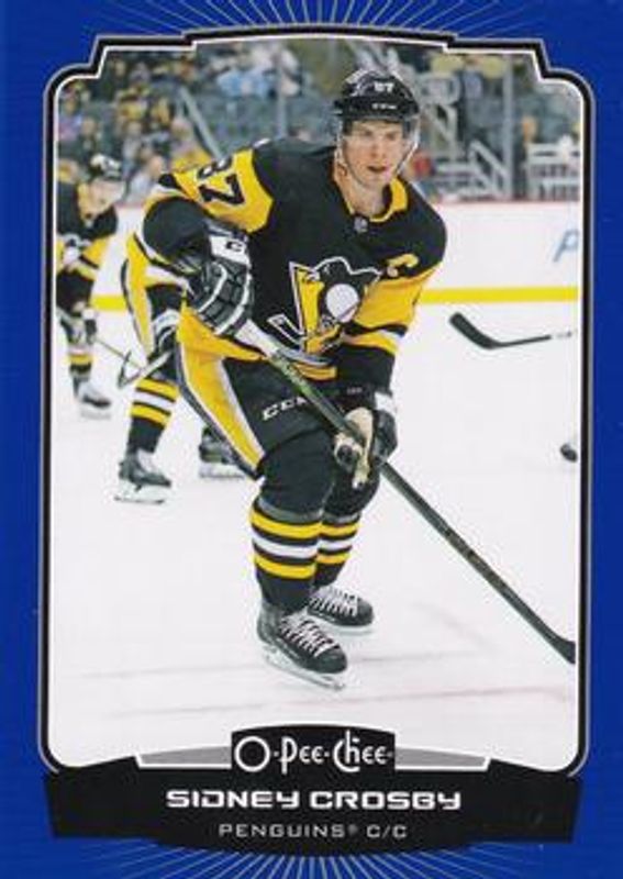 The Sidney Crosby 2022 O-Pee-Chee #87 Blue Border card is 1 of 35 Sidney Crosby's card variations in the 2022 O-Pee-Chee set being tracked by Sports Card Investor, including #87b Base, #87c Base, #87 Base, #87 Red Border, and #87 Retro.