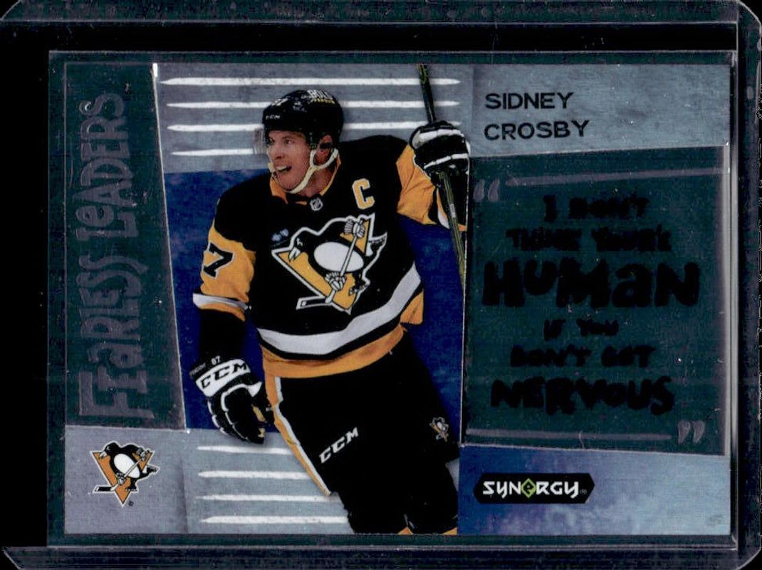 The Sidney Crosby 2023 Upper Deck Synergy #LD-25 Fearless Leaders card is 1 of 32 Sidney Crosby's card variations in the 2023 Upper Deck Synergy set being tracked by Sports Card Investor, including Base /24, Red, Red Codes, Purple /99, and Gold /25.