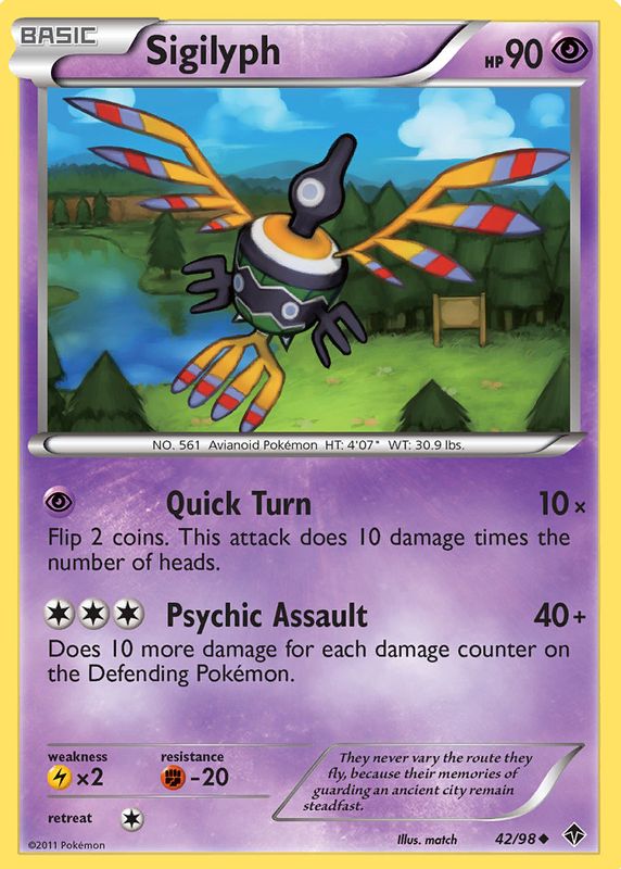 The Sigilyph 2011 Black & White: Emerging Powers #42/98 Base card in Raw TCG (Near Mint) condition has not changed in price in the last 30 days and was last sold for $1.11 .