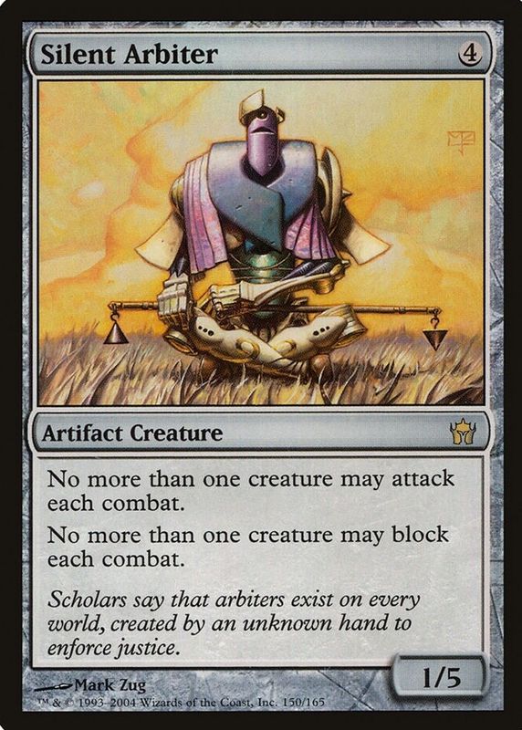 The Silent Arbiter 2004 Fifth Dawn #150 Base card in Raw TCG (Near Mint) condition has moved down -$0.04 (-0.3%) in the last 30 days and was last sold for $12.95 .