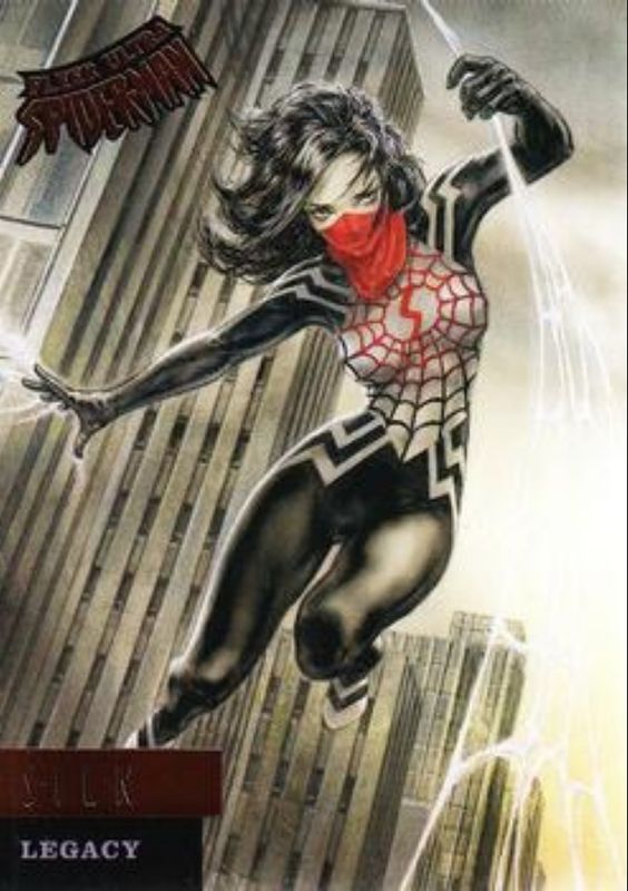 The Silk 2017 Fleer Ultra Spider-Man #L11 Legacy card is 1 of 39 Silk's card variations in the 2017 Fleer Ultra Spider-Man set being tracked by Sports Card Investor, including Base, Silver Web Foil, Gold Web Foil Autographs /49, Printing Plate Black /1, and Printing Plate Cyan /1.