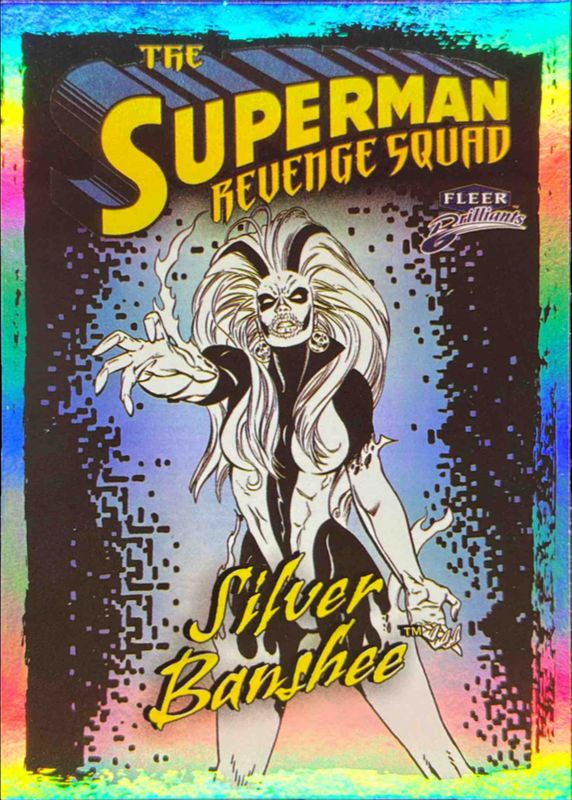 The Silver Banshee 2025 Fleer Brilliants Superman #RS-4 Superman Revenge Squad card is 1 of 14 Silver Banshee's card variations in the 2025 Fleer Brilliants Superman set being tracked by Sports Card Investor, including Base, Blue, Purple, Red, and Yellow.