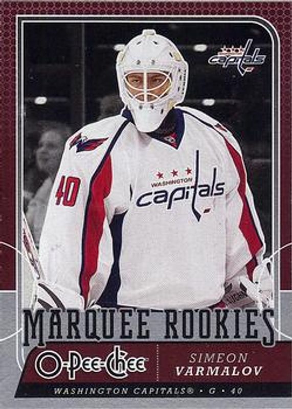 The Simeon Varlamov 2008 O-Pee-Chee #800 Base Rookie card is 1 of 7 Simeon Varlamov's card variations in the 2008 O-Pee-Chee set being tracked by Sports Card Investor, including 1979 Retro, 1979 Retro Blank Back, Gold, Metal, and Metal X.